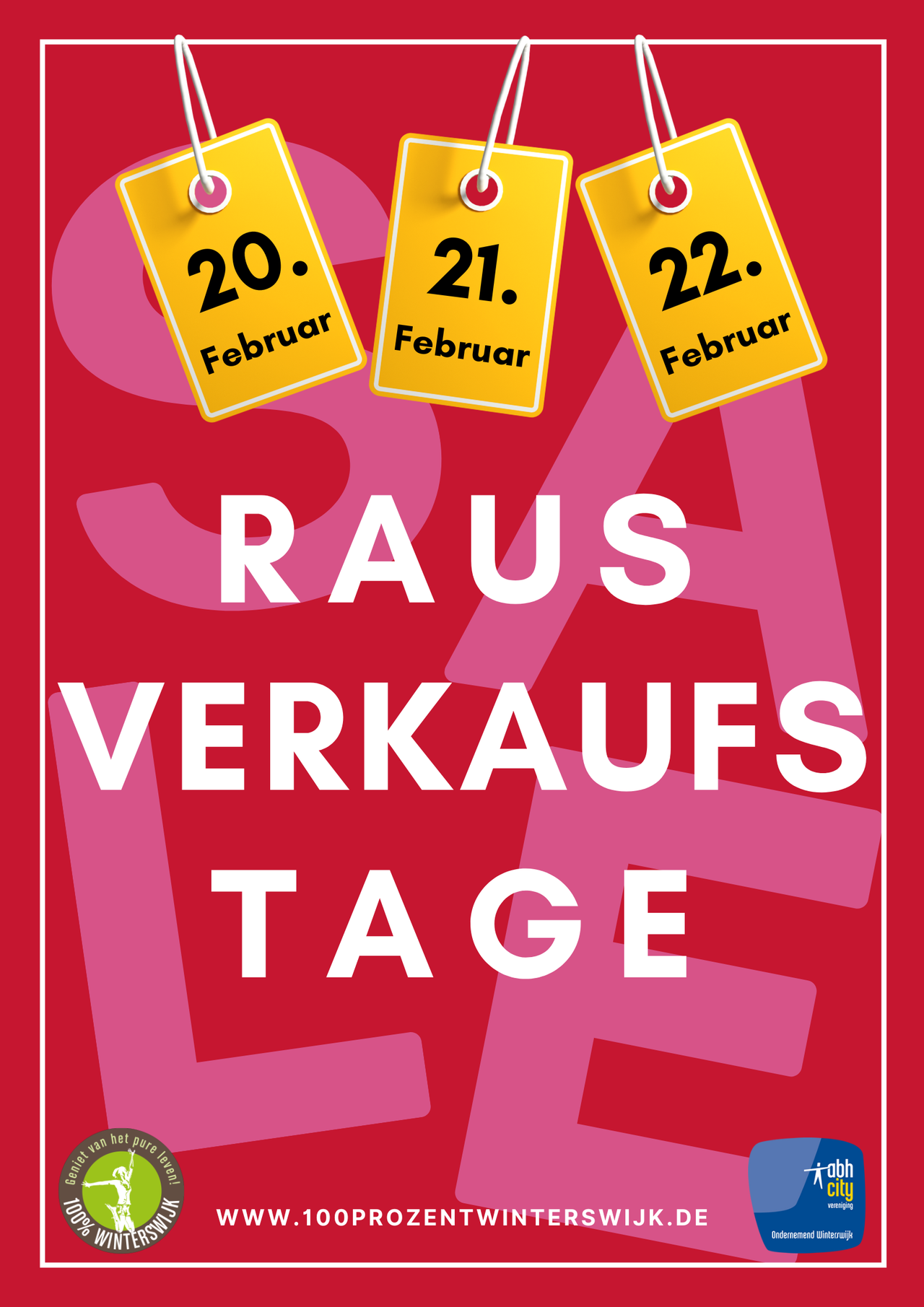 Schnäppchenjäger aufgepasst! Am 20., 21. und 22. Februar ist es wieder soweit ... die Finale Sale Tage in Winterswijk! Das ganze Wochenende lang verkaufen die Ladenbesitzer die letzten Ausverkaufsartikel, Schnäppchen und Restbestände der Saison zu Schnäppchenpreisen!